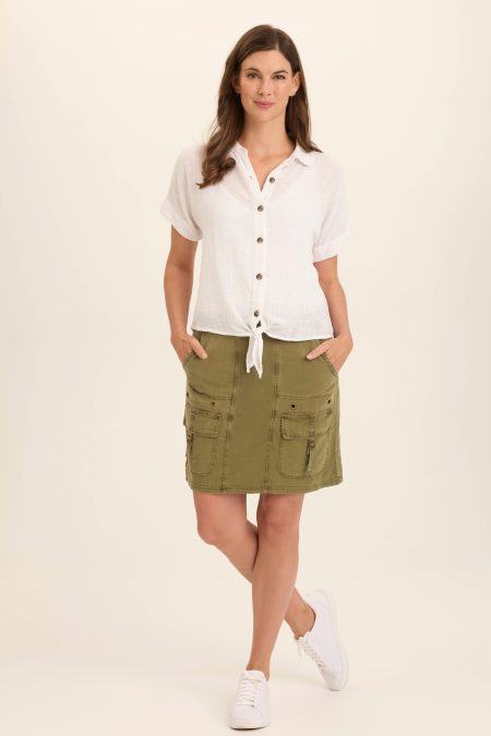 Doak Skirt with Sharkbite Hem and Cargo Pockets
